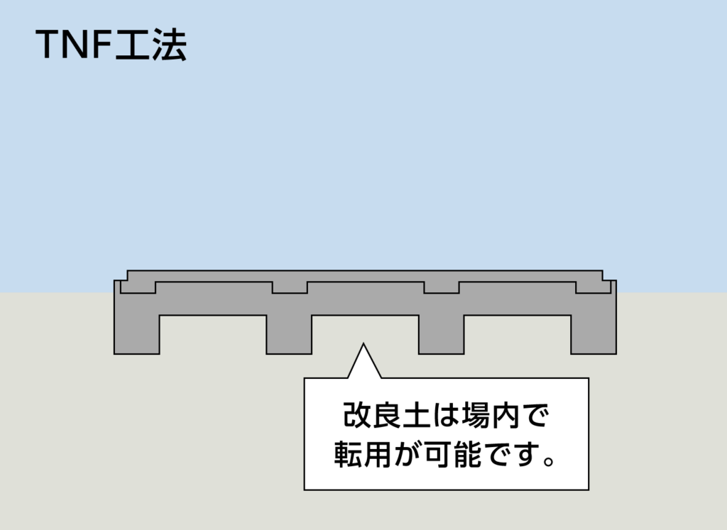 TNF工法は専用機械を必要とせず、調達が容易な汎用重機のみで施工が可能な為、速やかな着工が可能です。 - 建設残土が少なく、施工現場がきれい