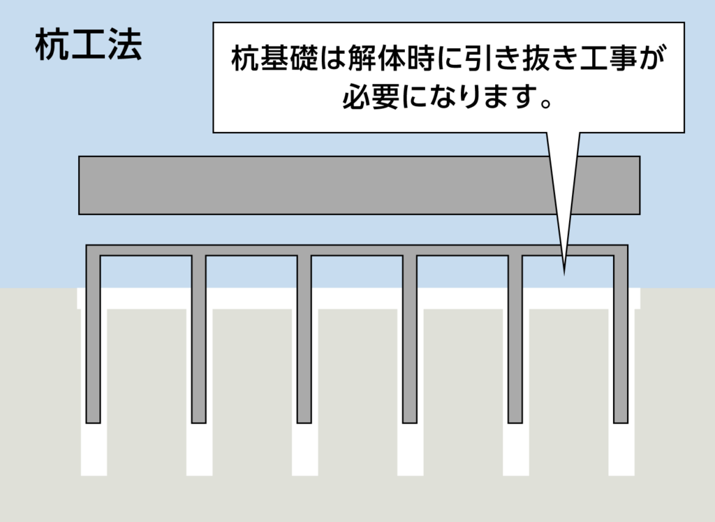 杭工法の場合、杭の撤去費用は打設費用の3倍とも・・・。TNF工法の場合、一定の大きさ以下に粉砕すれば良質地盤として残置が可能。