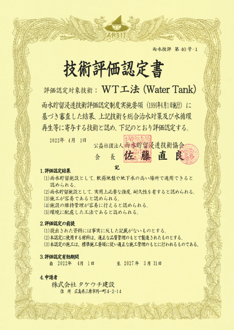 WT工法は、地盤改良体を貯留槽として活用する雨水貯留システムです。