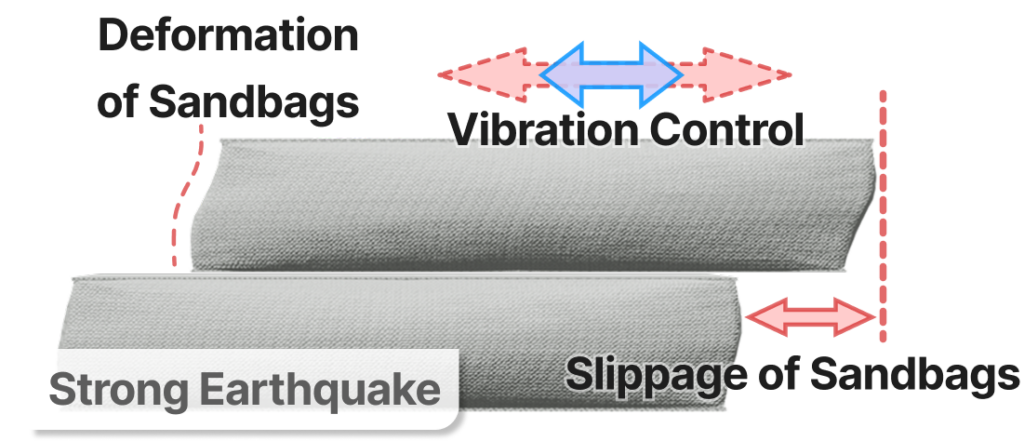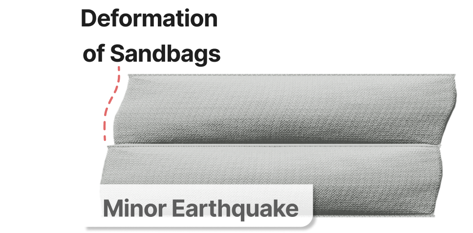 Seismic isolation effect: The sandbags undergo shear deformation, thereby preventing seismic vibrations from being transmitted to the building.