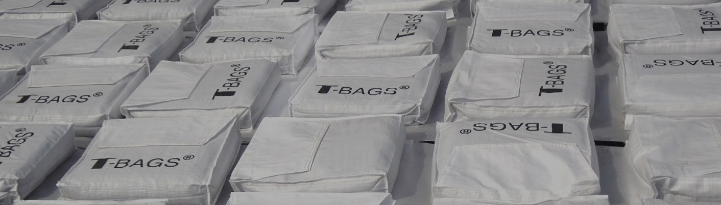 T-BAGS consist of polypropylene bags filled with uniformly graded sand. These bags are stacked in two layers and laid across the entire area beneath a foundation.