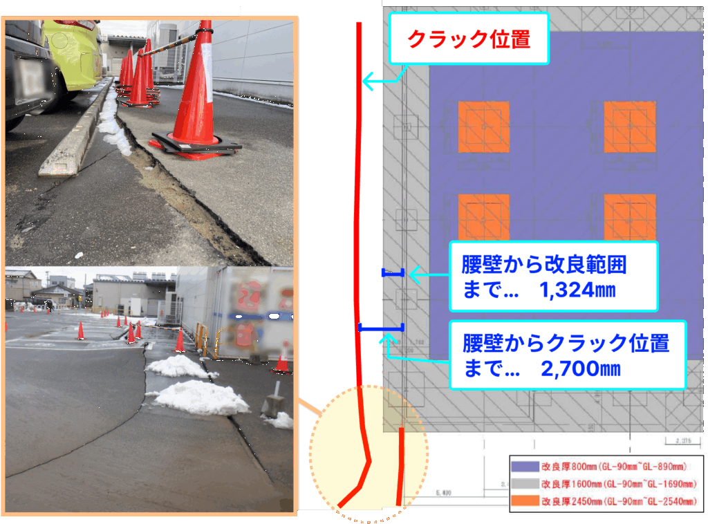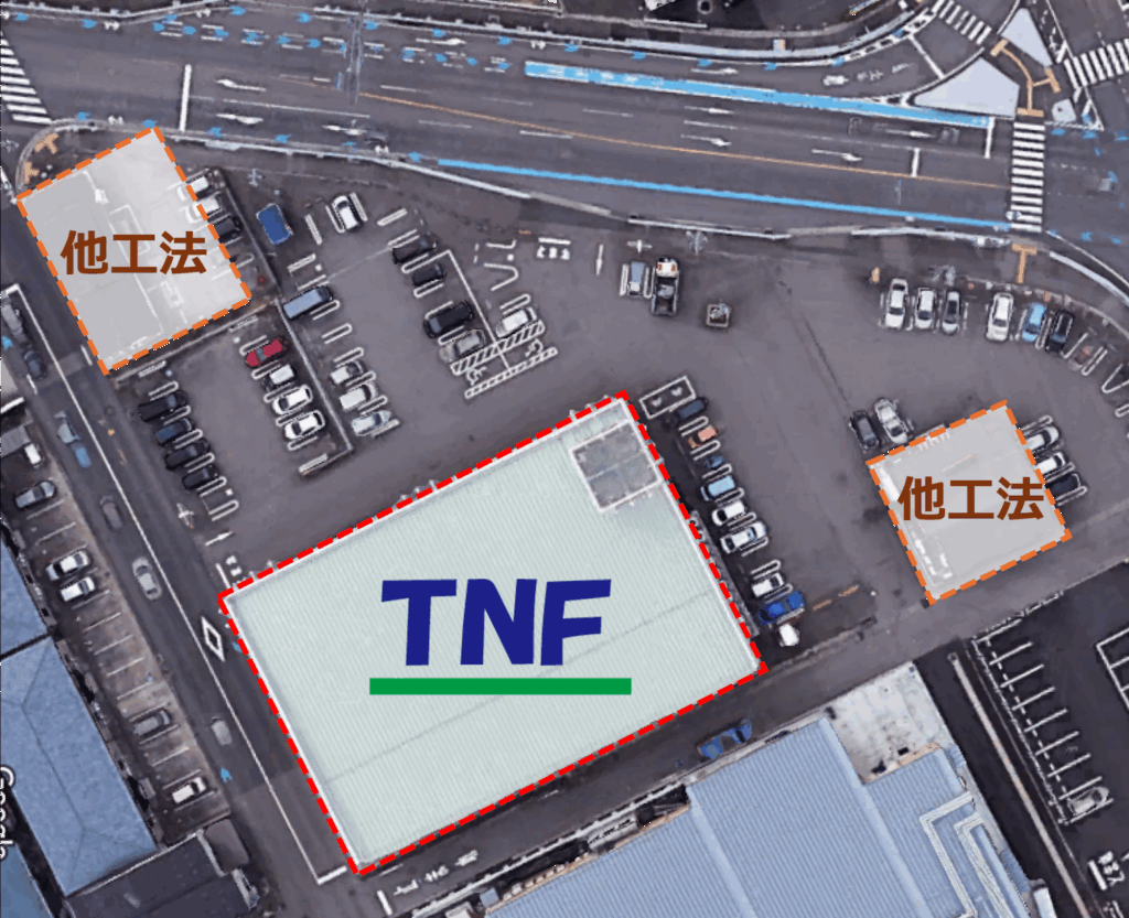 Despite widespread reports of liquefaction damage, we confirmed that buildings using the TNF method showed little to no ground settlement, effectively minimizing structural damage.