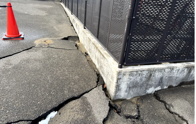 While there was little to no damage to the building itself, cracks caused by ground settlement occurred in exterior areas (such as the parking lot) outside the TNF improvement zone.