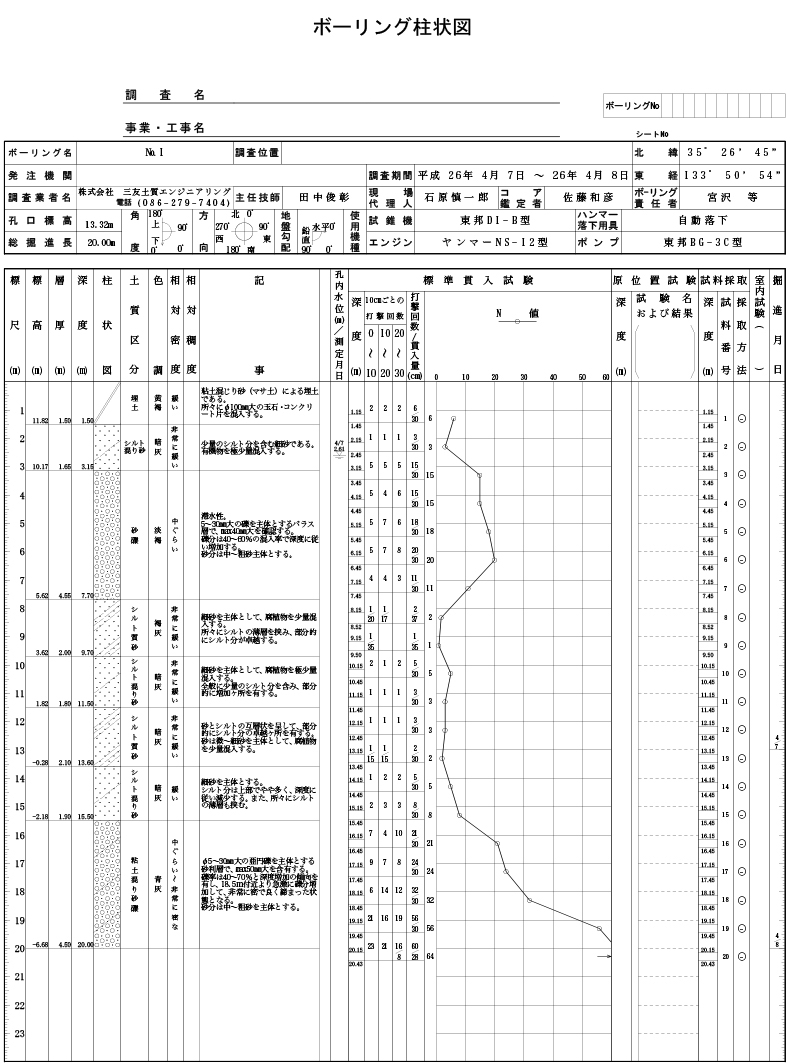 1. The ground conditions of this building consist of an upper 8 m sandy soil layer, underlain by an 8 m thick clayey soil layer with N-values of 1–5.