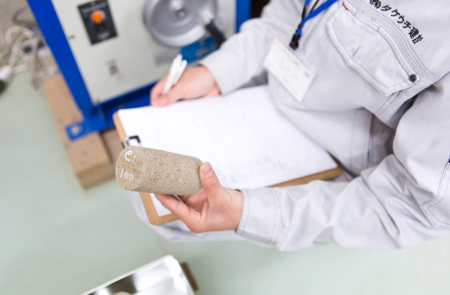 During ground improvement construction, unconfined compressive strength tests (JIS A 1216) are conducted after 7 and 28 days to verify that the strength meets or exceeds the design criteria.