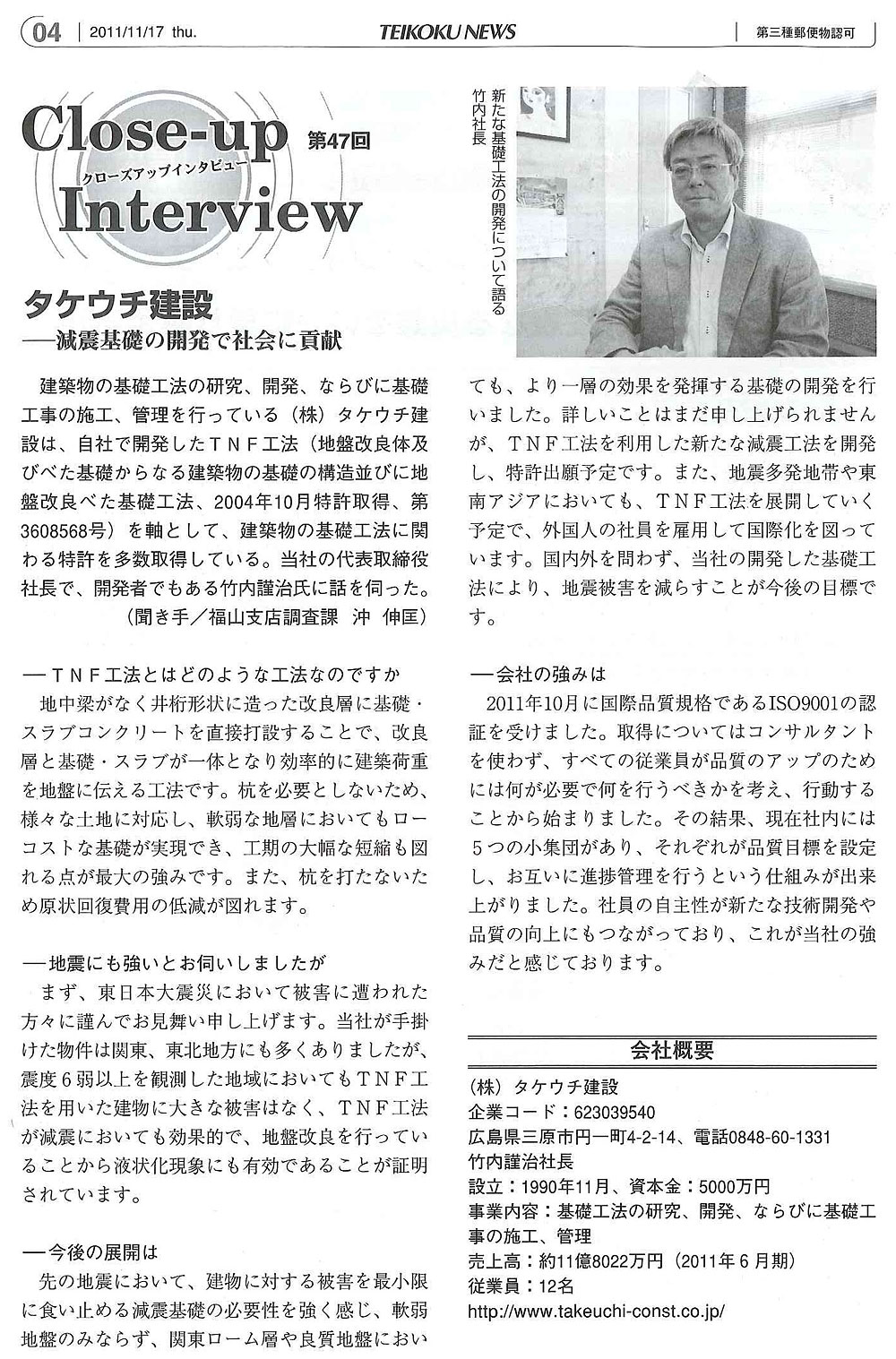 インフォメーション Information トップ インフォメーション (新着情報) 技術情報 TEIKOKU NEWS 2011.11.17 に掲載されました 2011.11.17 技術情報 TEIKOKU NEWS 2011.11.17 に掲載されました TEIKOKU NEWS クローズアップインタビューに掲載されました。 詳細は、こちら 技術情報一覧へ 全記事 一覧へ