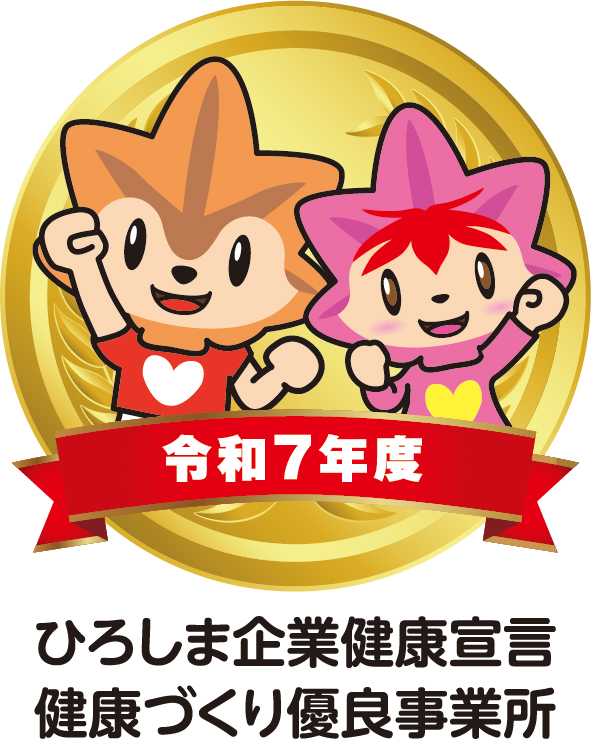 「ひろしま企業健康宣言 健康づくり優良事業所」の認定基準において3年連続5つ星認定(ゴールド)を頂きました。
