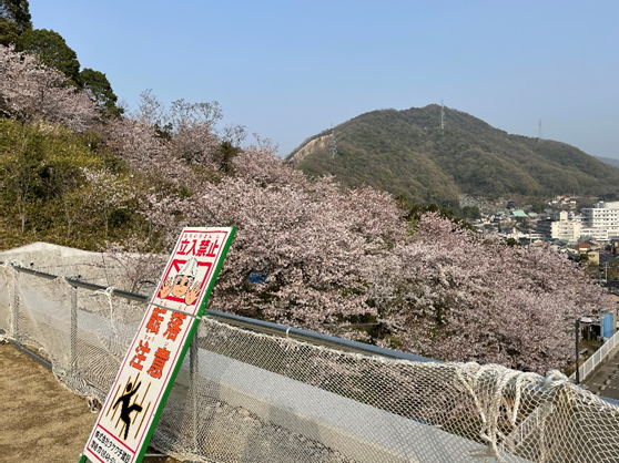 安全点検のため新社屋建設地に来ましたが、桜満開の景色を楽しめました。さすが「桜山」!