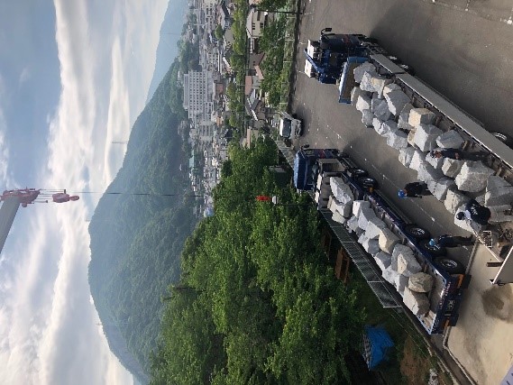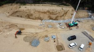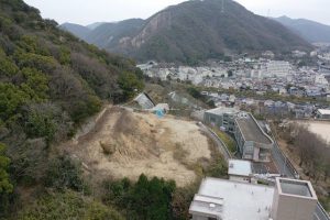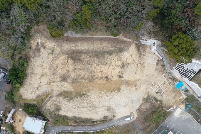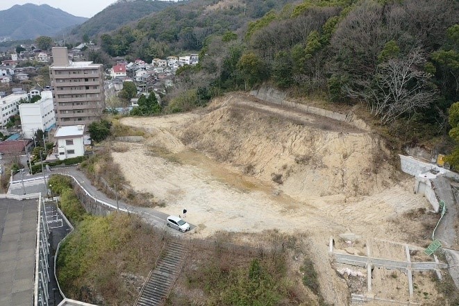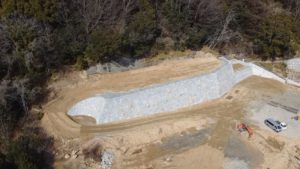 擁壁の開発工事が完了になり、建設地に入る道がきれいに整備されました!