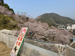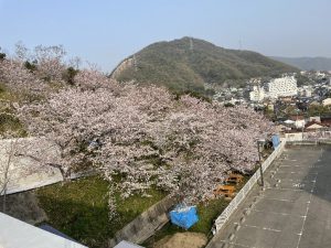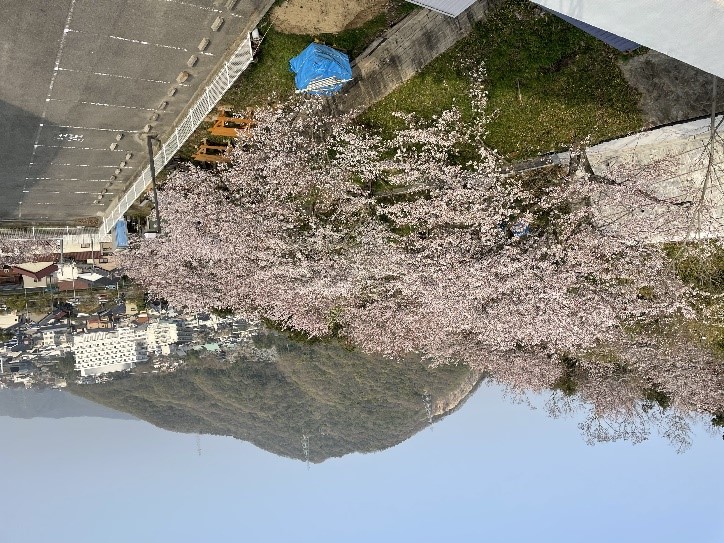 安全点検のため新社屋建設地に来ましたが、桜満開の景色を楽しめました。さすが「桜山」!