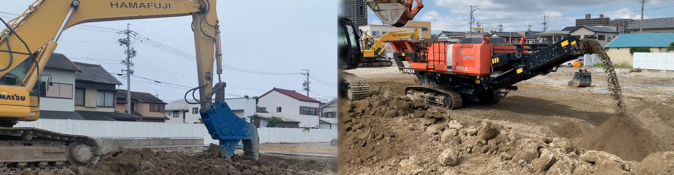 解体時に生じる地盤改良体は、細かく破砕することで建設発生土として再利用できます。